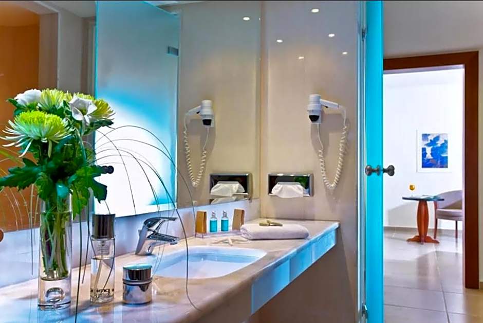 Spacious suite with 2 air conditioning units, 2 smart TVs, refrigerator and a private sea-view balcony. Offers: safe, hairdryer, toiletries. Please note that this room type cannot accommodate an extra bed.
